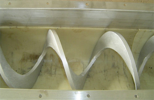 無軸螺旋輸送機與傳統有軸螺旋輸送機相比,由于采用了無中心軸、吊軸承設計,利用具有一定柔性的整體鋼制螺旋推送物料,因而具有以下突出優點: