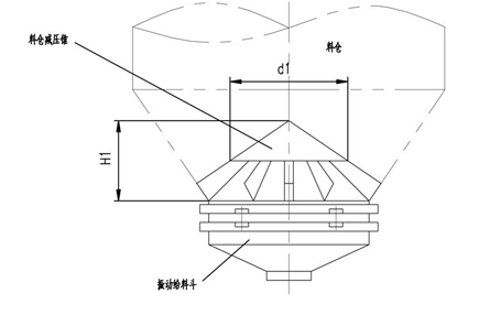 該產品在設計計算中已考慮了一定的倉壓,但建議在料倉內物料高度大于2m時,在料倉內安裝料倉減壓錐,以確保振動給料斗更穩定地工作,特別是確保其給料精度更趨準確。料倉減壓錐應焊接在料倉內,并保持平穩。